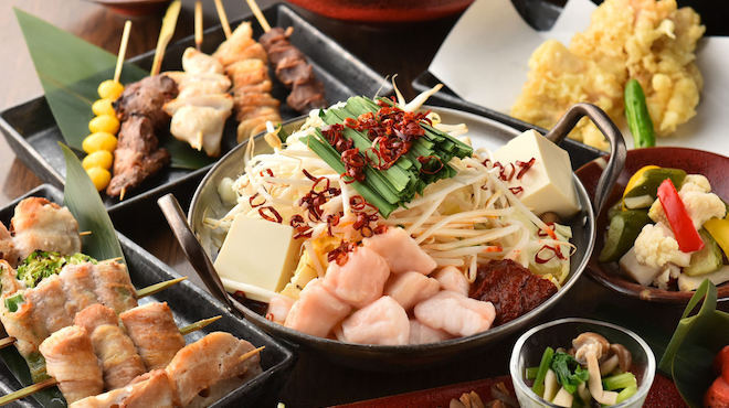 西船橋の駅前にある居酒屋で、もつ鍋や串焼きのコース料理の宣伝をお願いします。